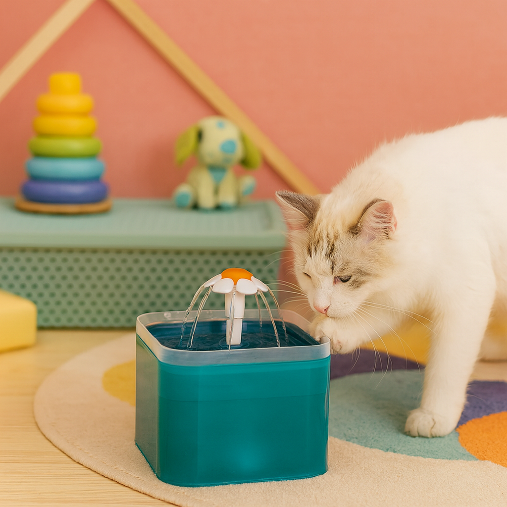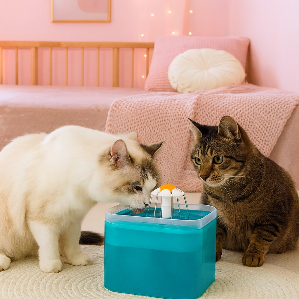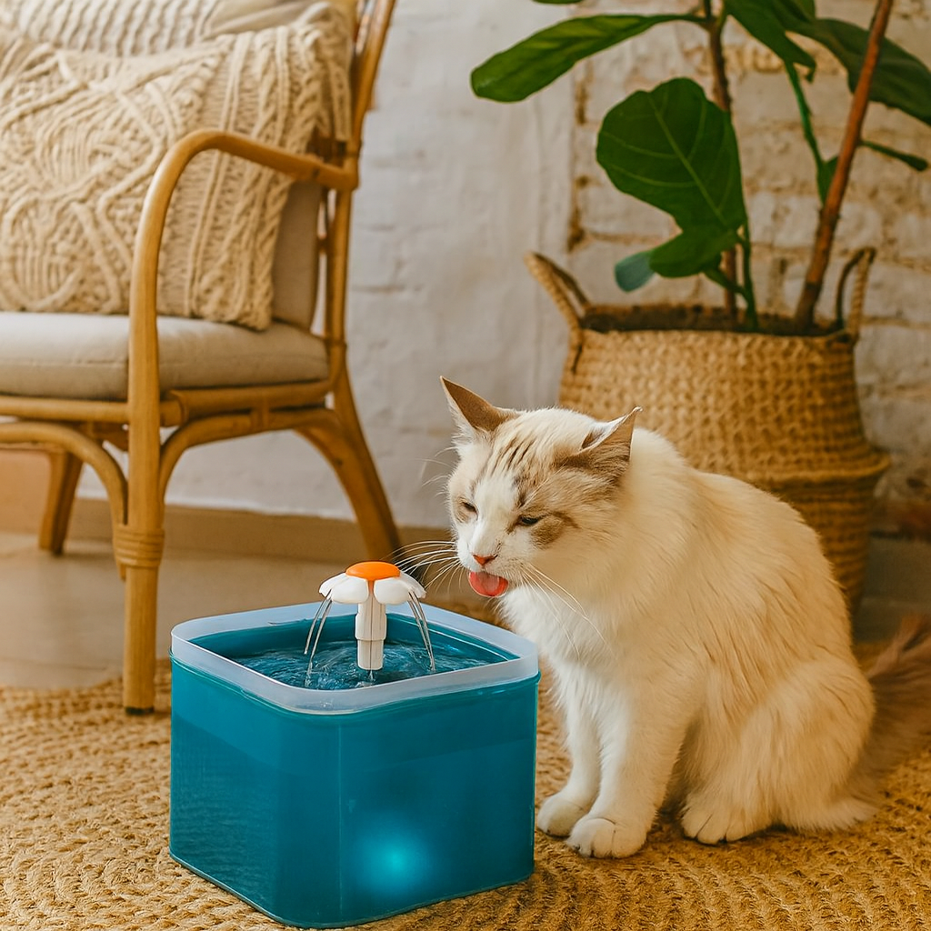 Dispensador de agua para mascotas en plástico con capacidad de 2 litros. Conexión inalámbrica.