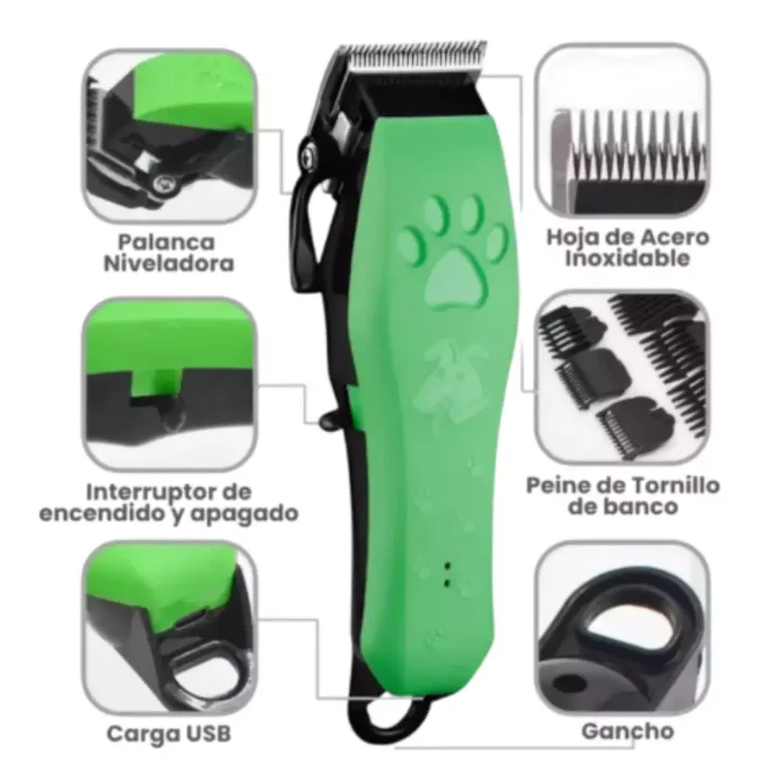 Máquina peluquera para mascotas ideal para cortar el pelo de perros y gatos en casa, ofreciendo un acabado profesional y silencioso que no asusta a las mascotas.